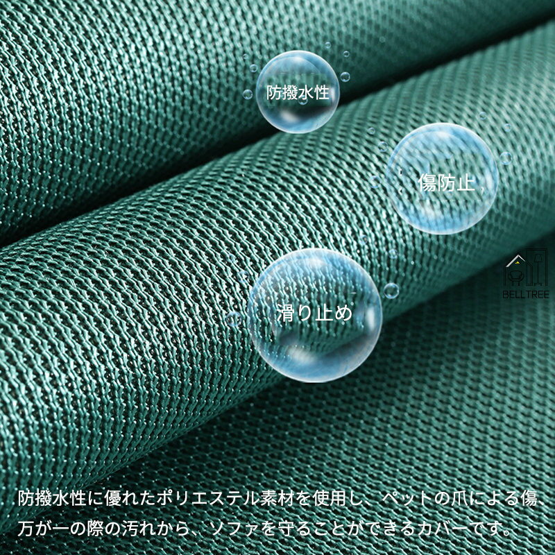 防撥水性に優れたポリエステル素材を使用し、ペットの爪による傷、万が一の際の汚れから、ソファを守ることができるカバーです。