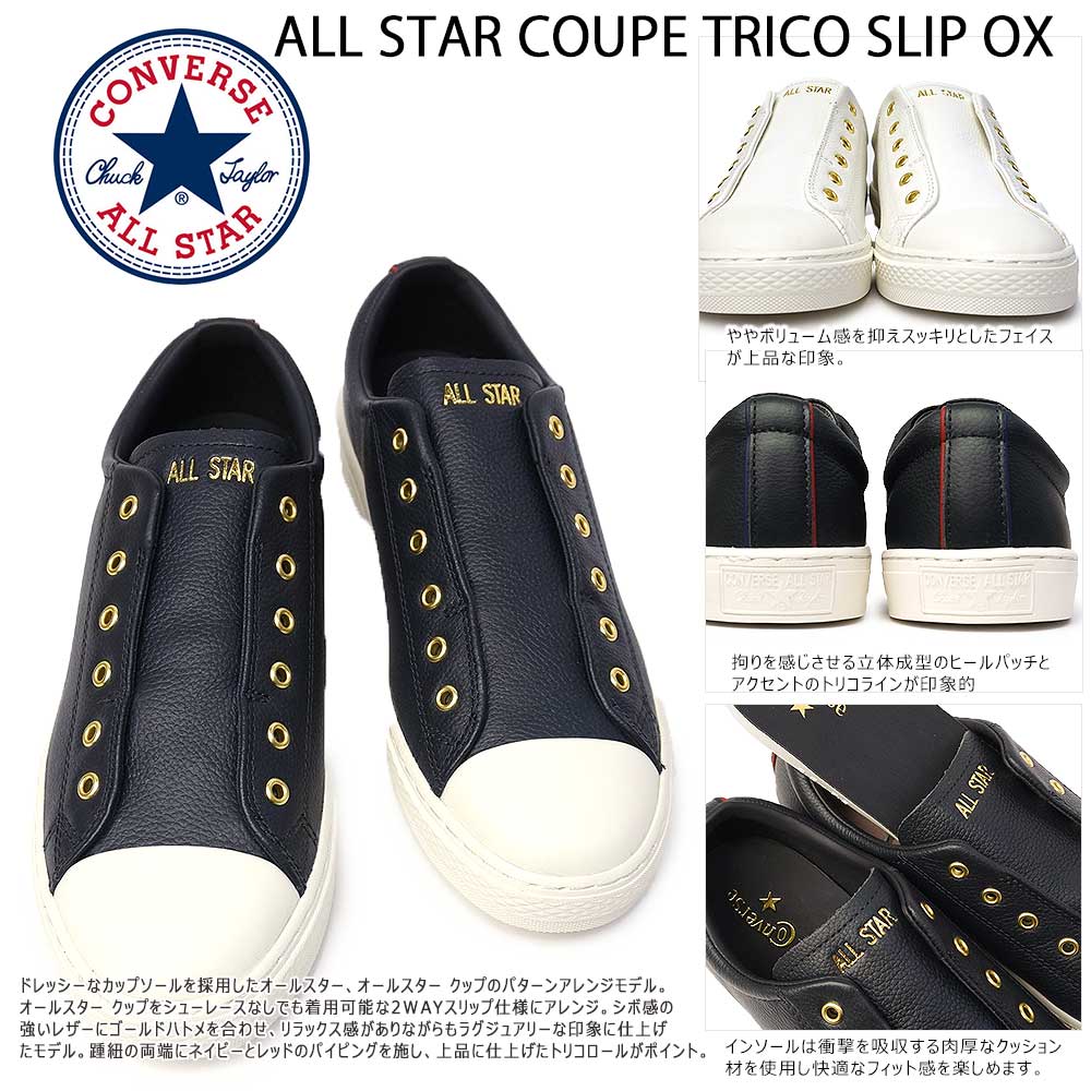 【あす楽】コンバース スニーカー オールスター クップ トリコ スリップ オックス レザー メンズ レディース ローカット スリッポン ユニセックス 紐なし CONVERSE ALL STAR COUPE TRICO SLIP OX