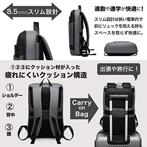 色:ネイビー メイン素材: ナイロン・PU(合成皮革)表地: 人工皮革ストラップの種類: ショルダーストラップ留め具の種類: ファスナー薄型で背負ったままでも通勤通学の朝夕のラッシュに対応できる薄型バックパック。