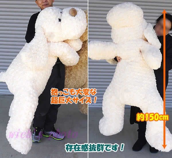 お子様の抱っこには大き過ぎるぐらいの超巨大サイズ! お子様の生涯忘れえぬプレゼントにいかがですか? 全長なんと150cm! とにかく大きくて存在感抜群のいぬのぬいぐるみです♪