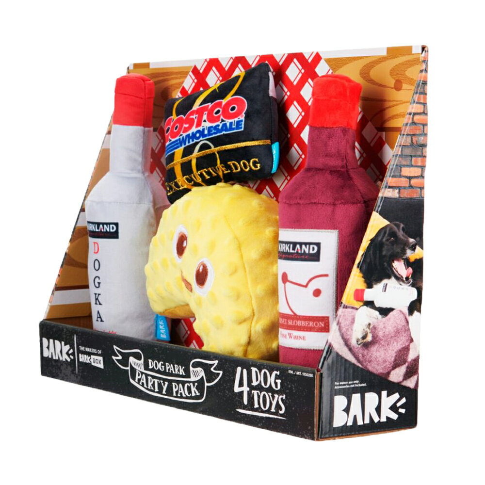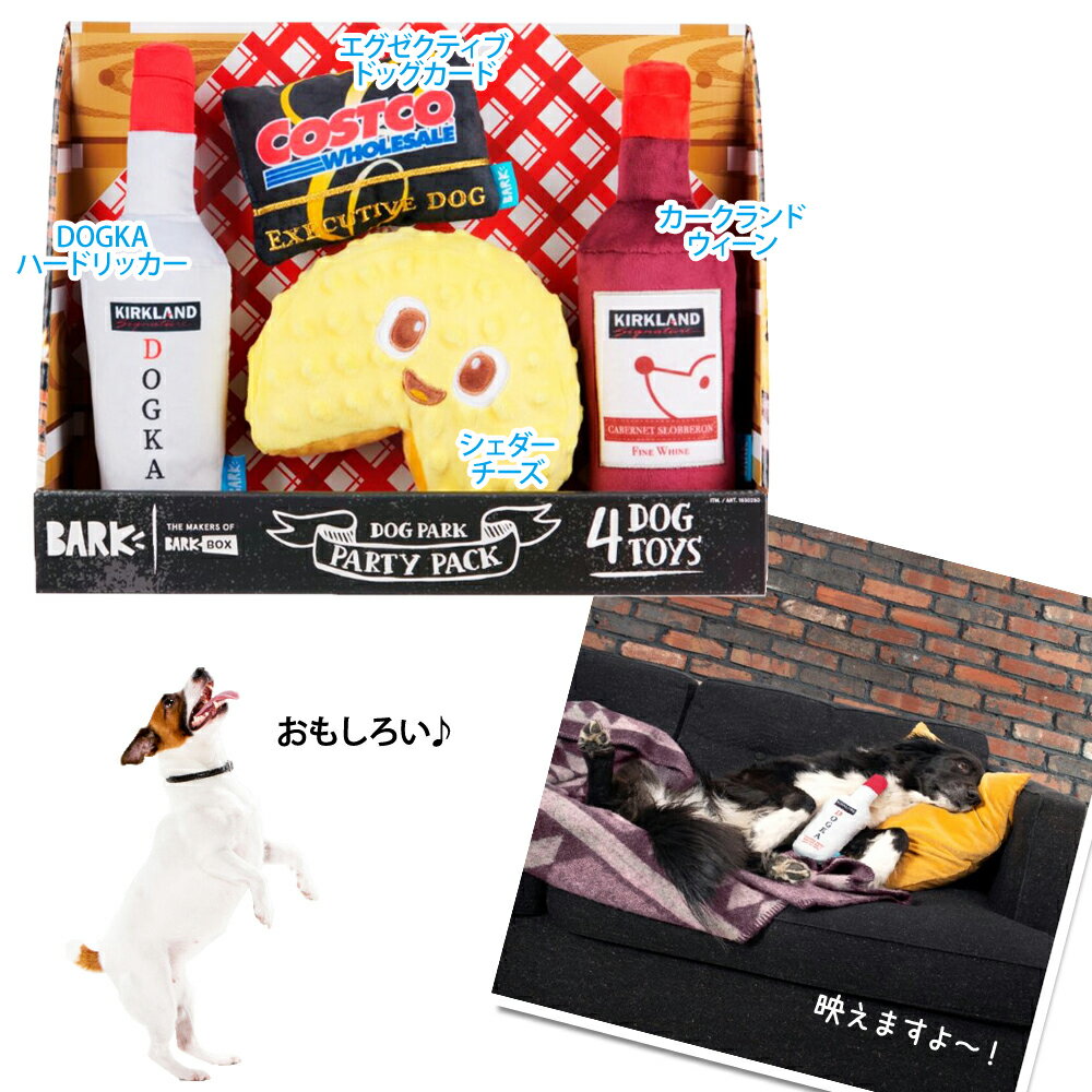 【BARK】コストコ costco フードコート 犬のおもちゃバンドル 4個セット 噛むおもちゃ セット内容4個セット(エグゼクティブドッグカード(メンバーズカードの形のおもちゃ)、 カークランド・ウィーン(ワインボトルの形のおもちゃ)、 DOGKAハードリッカー(ウオッカボトルの形のおもちゃ)、シェダーチーズ(チェダーチーズの形のおもちゃ)) 内容量4個セット 適用年齢3歳以上の愛犬対象です! 商品詳細 BarkBoxのメーカーから、愛犬のために作られた4つのおもちゃのバンドル、 BARK Dog Park Party Packが登場します! ドッグパークでは常にハッピーアワーなので、エグゼクティブドッグメンバーカードを手に入れて、 これらのプレイタイムの必需品を買いましょう!