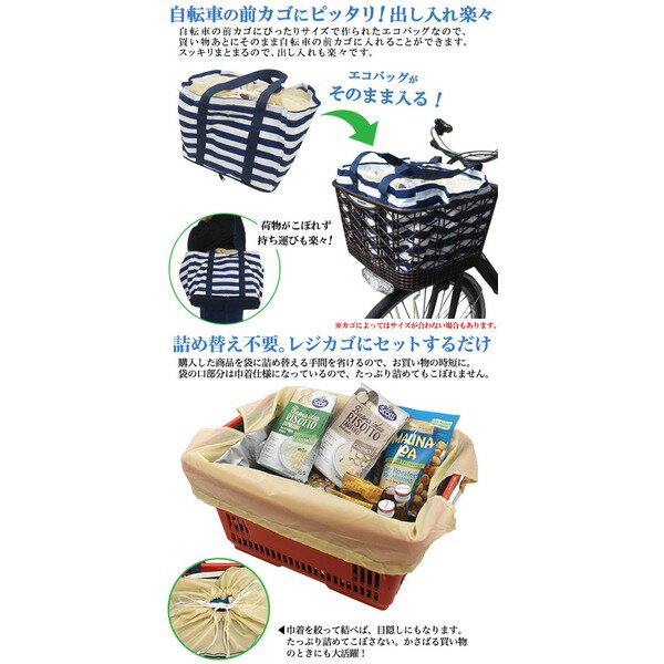 ■サイズ・色違い・関連商品■ブルー■ブラウン[当ページ]■商品内容・買い物あとのエコバッグをそのまま自転車の前カゴに!自転車の前カゴにぴったりサイズで作られたエコバッグなので買い物あとにそのまま自転車の前カゴに入れることができます。