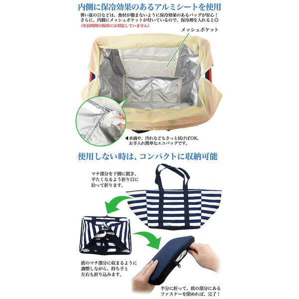 袋の口部分は巾着仕様になっているので、たっぷり詰めてもこぼれ落ちません!目隠しにもなるのでとっても便利!・内側には保冷・保温効果のあるアルミシートを使用!暑い夏の日などは、食材が傷まないように保冷効果のあるバッグだと安心です。