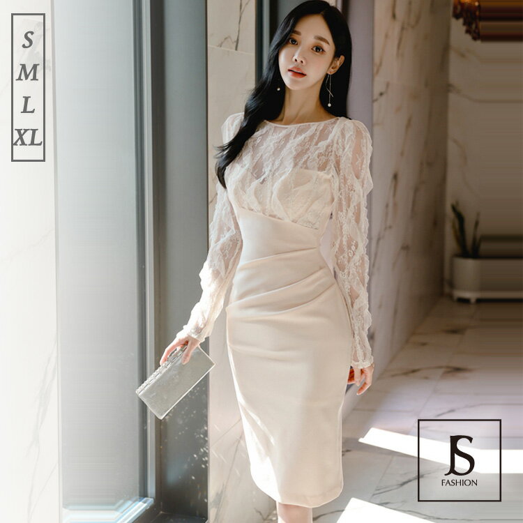 楽天ランキング1位 韓国製 【交換無料】[ ポイント刺繍レース シースルー 五分袖 タイト ミディアムドレス ワンピース ] 大人 即納 レディース 大きいサイズ パーティー きれいめ キャバクラ 春 冬 高級クラブ リンファーレ 福袋クーポン [S/M/L] ピンク ベージュ