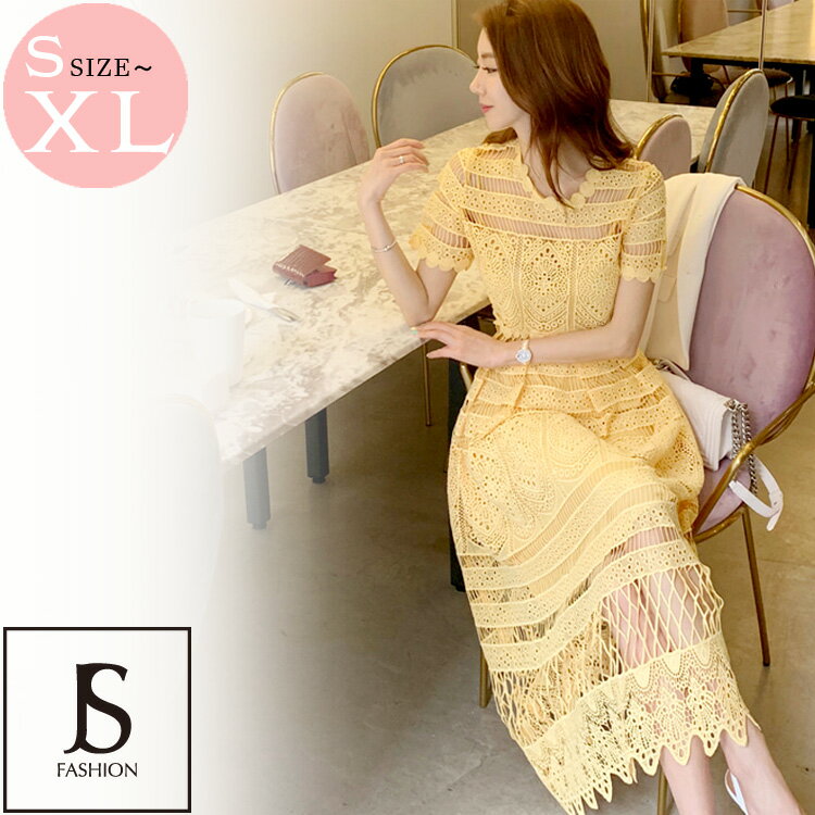 総レースワンピース 結婚式 パーティードレス 開襟 刺繍レース シースルー ミディアム丈 きれいめ 春カラー レースドレス 春ワンピース 華やかおしゃれ 大人セクシー 大きいサイズ 大人可愛い 春夏 秋冬 謝恩会 二次会 発表会 お呼ばれ【210323】