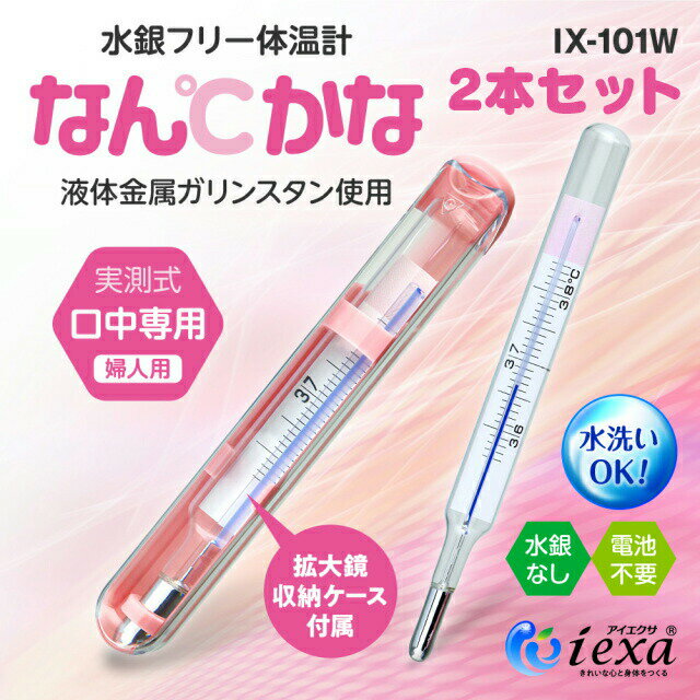 2本セット 婦人体温計 なんどかな 水銀フリー 婦人用体温計 基礎体温計 IX-101W 婦人用体温計 アナログ体温計 ガリウム体温計 実測式 口中専用 一般医療機器 拡大鏡付き 収納ケース付属 アイエクサ iexa ガラス製 婦人用 2本 2歩 セット 医療機器 ix101