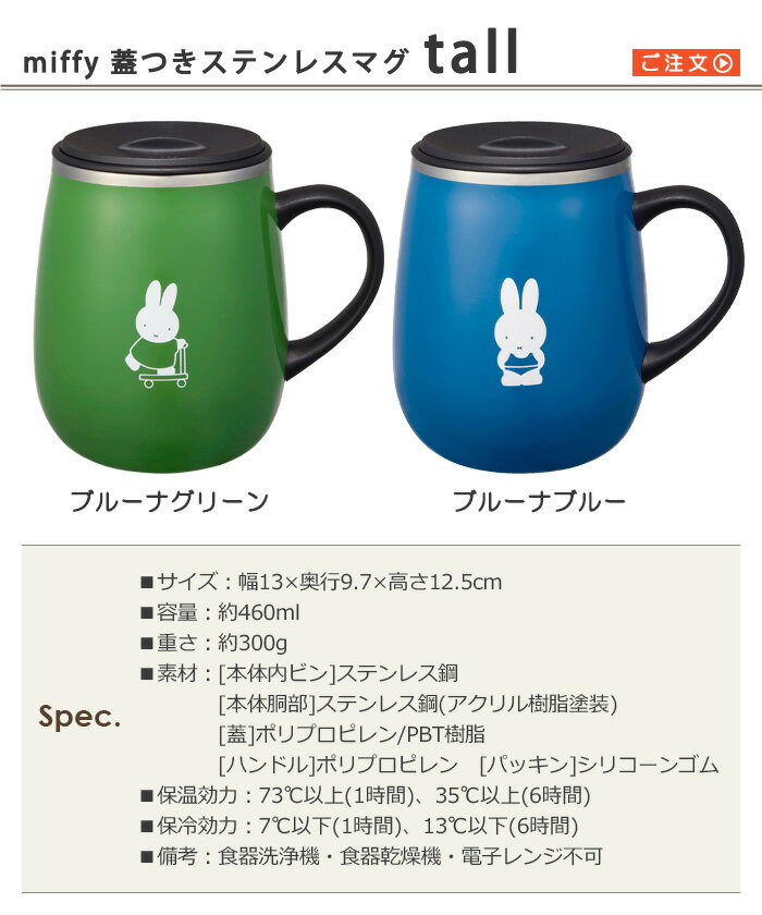 ■商品名 ブルーノ ミッフィー 蓋つきステンレスマグ トール BRUNO miffy LID STAINLESS MUG tall ■特典 ポイント10倍 ■テイスト おしゃれ かわいい シンプル ■用途・シーン マグカップ ミッフィー 蓋つき 460ml フタ 保温 保冷 おすすめ かわいい 人気 ステンレス キャラクター うさぎ 真空二重構造 マグ フタ付 蓋付き 子供 大人 ■JAN・型番 4514499165332 4514499165349 BHK263-BRGR BHK263-BRBLミッフィーと一緒にほっと一息適温をキープしてくれる 蓋つきステンレスマグ BRUNOからミッフィーのイラストがかわいい、蓋付きステンレスマグの登場です。