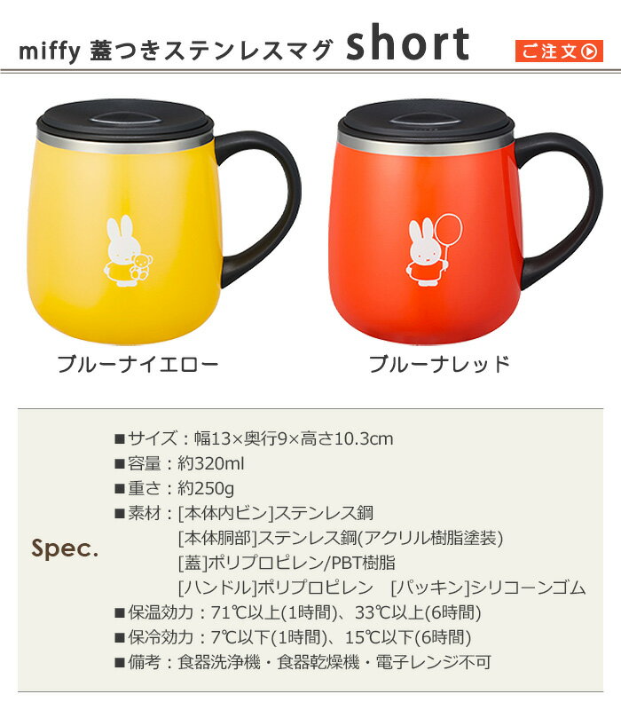 ■商品名 ブルーノ ミッフィー 蓋つきステンレスマグ ショート BRUNO miffy LID STAINLESS MUG short ■特典 ポイント10倍 ■テイスト おしゃれ かわいい シンプル ■用途・シーン マグカップ ミッフィー 蓋つき 320ml フタ 保温 保冷 おすすめ かわいい 人気 ステンレス キャラクター うさぎ 真空二重構造 マグ フタ付 蓋付き 子供 大人 ■JAN・型番 4514499165318 4514499165325 BHK262-BRYE BHK262-BRRミッフィーと一緒にほっと一息適温をキープしてくれる 蓋つきステンレスマグ BRUNOからミッフィーのイラストがかわいい、蓋付きステンレスマグの登場です。