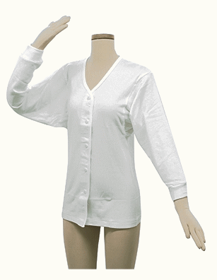 ○やさしい着心地 腕を通しやすく上げ下げが楽なように、袖付け部にゆとりを持たせています。
