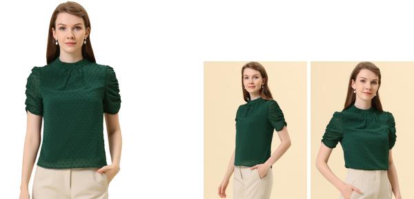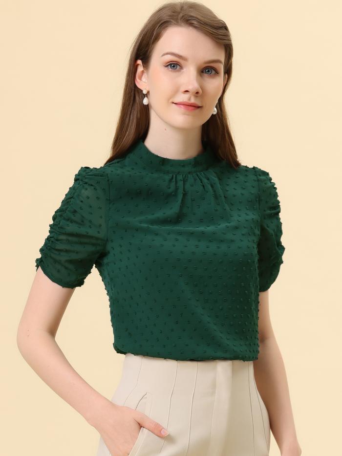 ソウテン Allegra K ブラウス レディース 半袖 シフォンブラウス パフスリーブ シャツ オフィス 無地 カジュアル トップス 着痩せ おしゃれ 通勤 OL グリーン L
