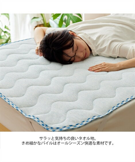 敷きパッド 吸汗速乾 なめらか レーヨン混 タオル地 夏 ブルー ダブル ニッセン nissen