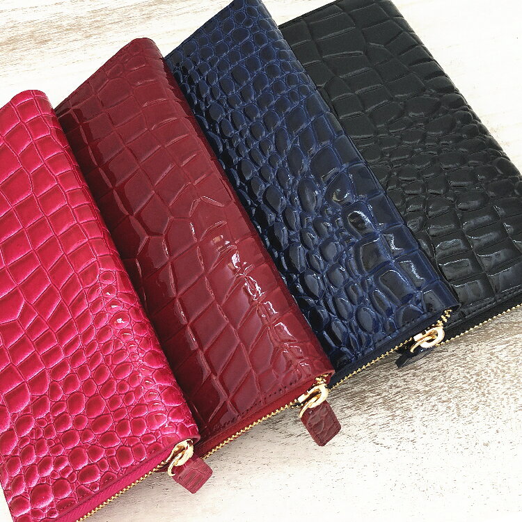 カード 8枚 小銭入れ×1 フリーポケッド×2 御札入れ×2 商品説明商品名本革 クロコ型押し エナメル 長財布 レディース 素材 本革 サイズ縦約10cm 横幅約19cm マチ約2.5cm 説明 財布の中身はスッキリ整理整頓とありたいものですよね!? 長財布で収納がありすぎると詰め込み過ぎて荷物は少ないのに財布が重〜い と、いうことがよくありませんか? そこでオススメなのが 一度使うとやめられないラウンドファスナーの長財布!! 本革エナメルにクロコの型押しで上品かつ高級感漂うデザイン! 傷がつきにくく汚れにくいので長く愛用していただけます。