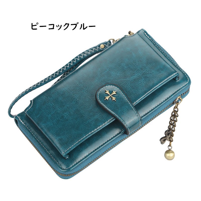 商品情報素材PU サイズ約 縦20×横11×マチ4cmカラーピーコックブルー、レッド、イエロー、ブラック仕様お札入れ、カード入れ×8、小銭入れ注意事項※商品の色は、携帯電話やお使いのパソコンモニター環境により、若干異なって見える場合がございます。
