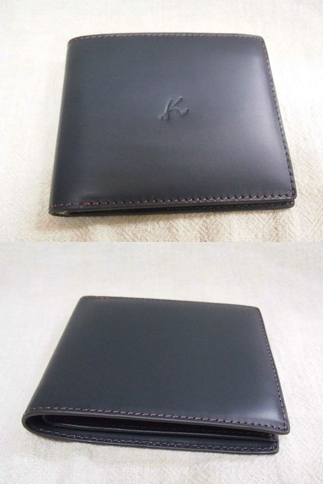 キタムラ レザー・二折財布(札入れ) ZH0071-10711 ダークブルー(チャコール)/ワインステッチ 定価1.6万円【新品】