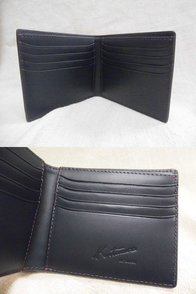 Kitamura★キタムラ レザー・二折財布(札入れ) ZH0071-10711 ダークブルー(チャコール)/ワインステッチ 定価1.6万円【新品】Y02