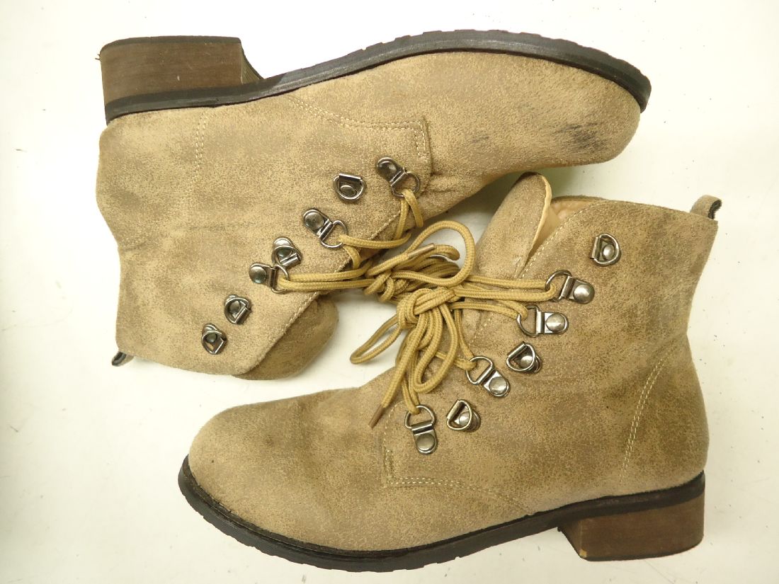 (複数ご購入の場合も一足分の送料のみとなります)【メーカー】YOYO【商品名】レディース マウンテン風 ショートブーツ レースアップ 編み上げ【サイズ】表記サイズ 36(22.5cm〜23.0cm程度)実寸 ヒール高 約3.0cm 筒高 約11.5cm【色】BROWN/ブラウン/茶色【素材】合成皮革(スエード調素材)【状態】ヒールの減り、スレ、汚れが見られますが、まだまだ履いていただけます◎※多少見落としがある場合がございます。
