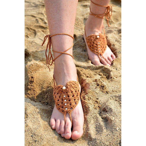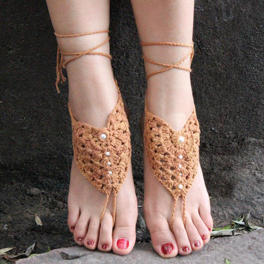 手編みのコットンでできたベアフット(裸足)サンダル。