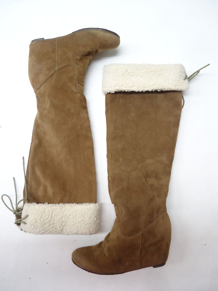 (複数ご購入の場合も一足分の送料のみとなります)【メーカー】Chaopanic/チャオパニック【商品名】レディース インヒール バックレースアップ 編み上げリボン ロング ニーハイブーツ【サイズ】表記サイズ 37(23.5cm程度)実寸 インヒール高 約6.5cm 筒高 約48.5cm 履き口周 約38.0cm【色】BROWN/ブラウン/茶色【素材】スエード調素材【状態】少しヒールの減りが見られますが、使用に問題はありません◎※多少見落としがある場合がございます。