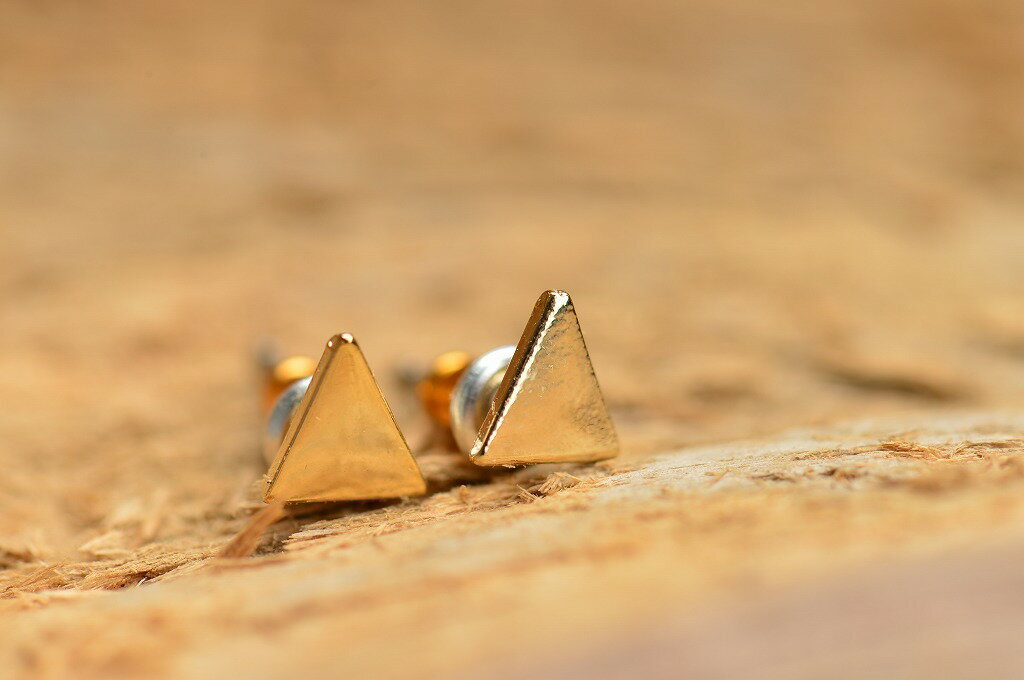 フラットトライアングルとストーンのお得な2ペアのピアスセットです。